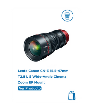 El Canon CN-E 35 mm T1.5 LF es un objetivo de cine de enfoque manual que cubre sensores Super 35 y Full Frame. Ofrece excelente rendimiento con poca luz y control preciso de la profundidad de campo, proporcionando calidad de imagen 4K en un cuerpo ligero con montura EF.