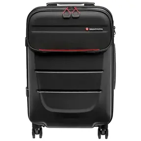 Almacene, transporte y proteja cómodamente una o dos DSLR profesionales o cámaras sin espejo, una lente de 400 mm f/2.8 adjunta, hasta cuatro lentes adicionales y una computadora portátil de 15" en la bolsa negra con ruedas para cámara Pro Light Reloader Spin-55 de Manfrotto . Esta bolsa versátil tiene un inserto de nailon con divisores interiores acolchados que se sujetan al tacto que encaja dentro de la cubierta de policarbonato. Los fotógrafos apreciarán la cubierta de malla transparente con cremallera que ayuda a asegurar el equipo. Quitar el inserto es una manera fácil de convertir la bolsa para el uso diario.